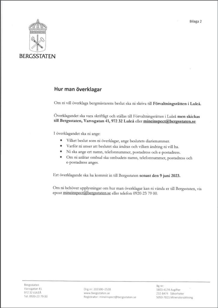- Invänta beslut för att gruvbolaget får ett undersökningstillstånd och läs instruktionen för överklagan noga.